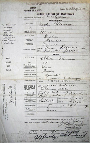 Reverend Sillak, of Medicine Hat, signed this document as the officiating Lurtheran minister.